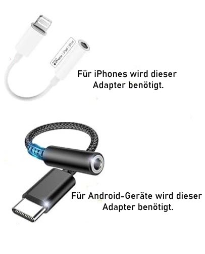 Hinweis: Für neuere Mobiltelefone ohne 3,5-mm-Klinkenbuchse (Kopfhöreranschluss) finden Sie die passenden Adapter in Online-Shops oder Fachgeschäften für Smartphone-Zubehör.