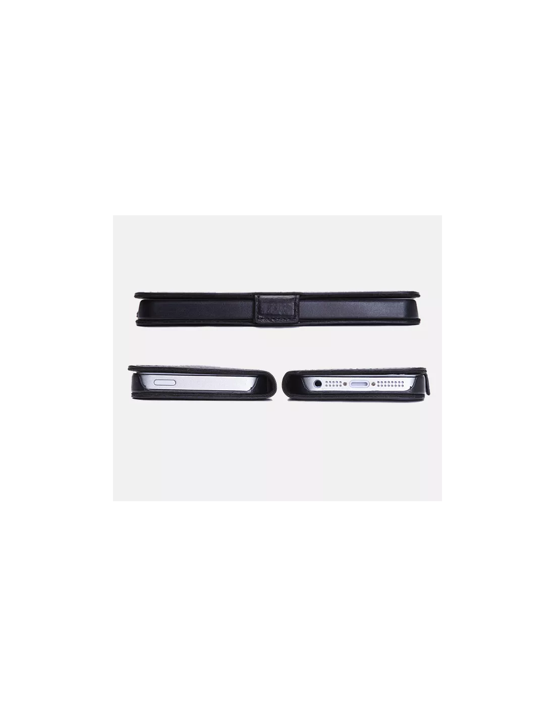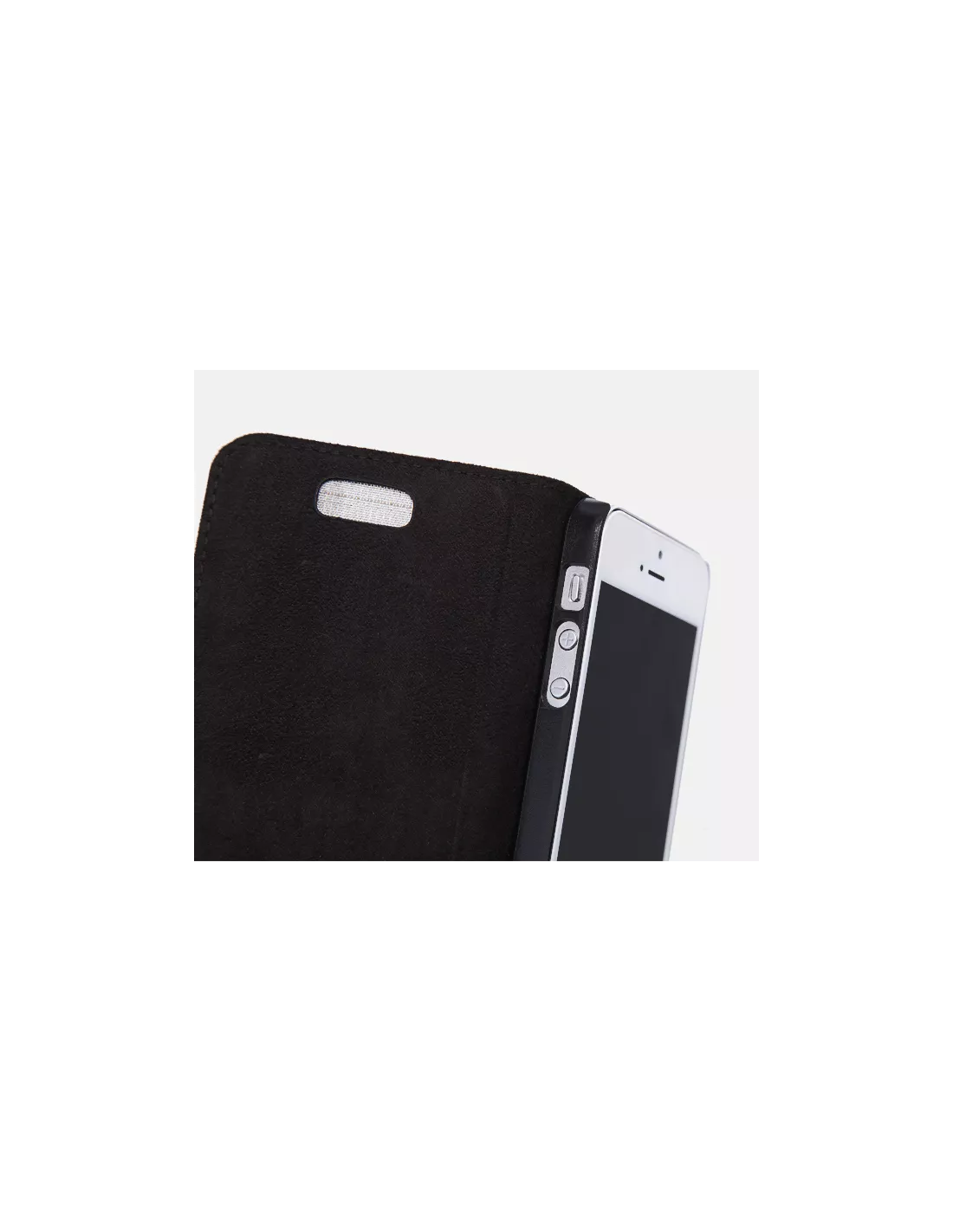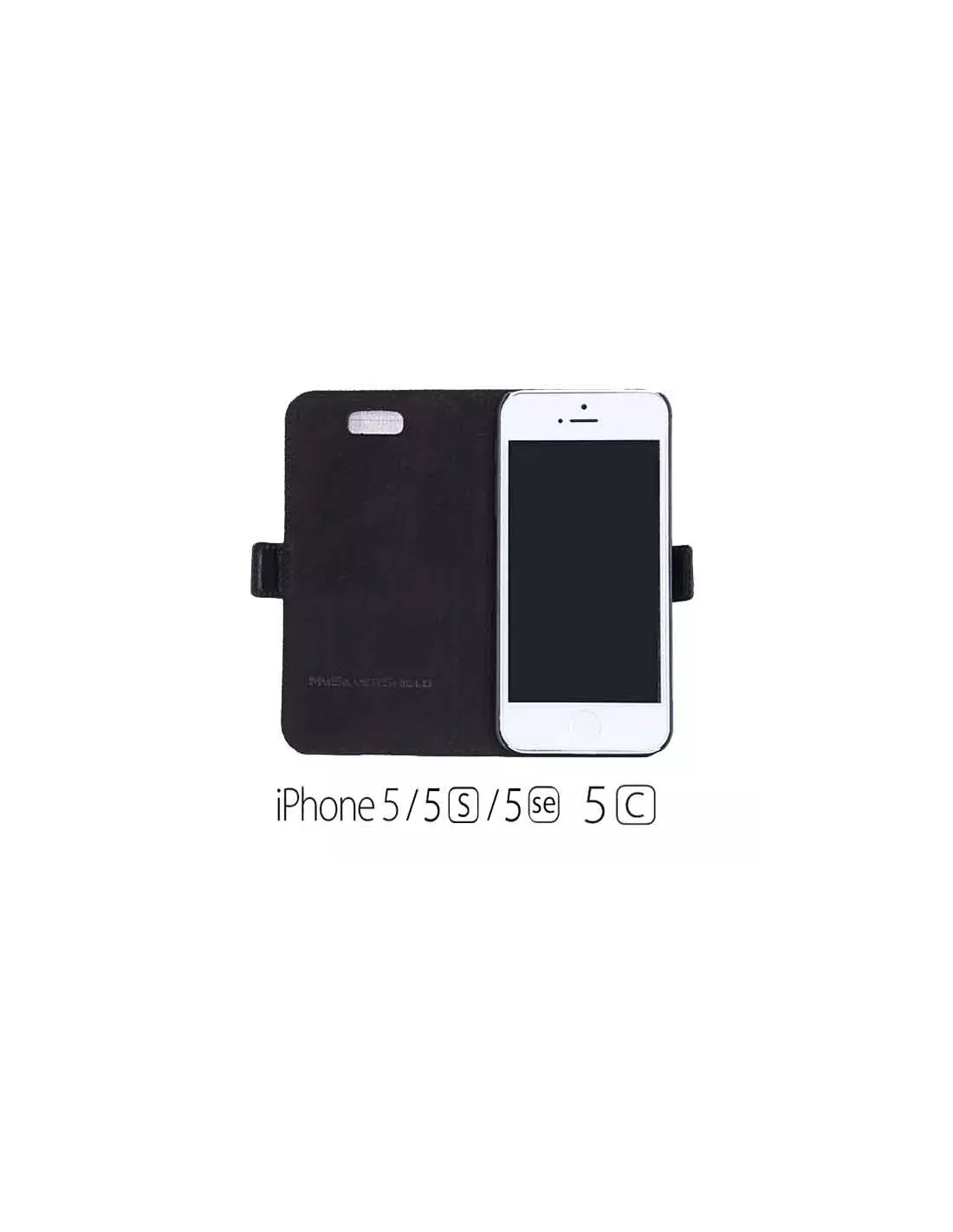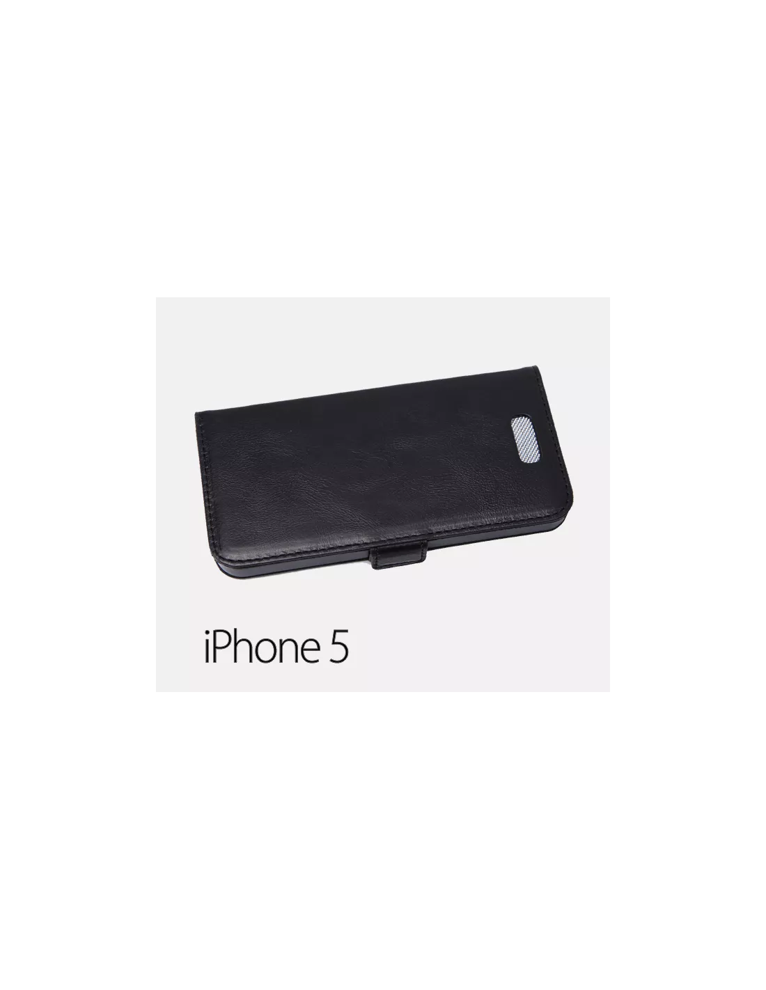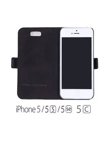Custodia anti-radiazioni in pelle nera (a libro) per iPhone 5 / 5s / 5c / 5SE (2016)