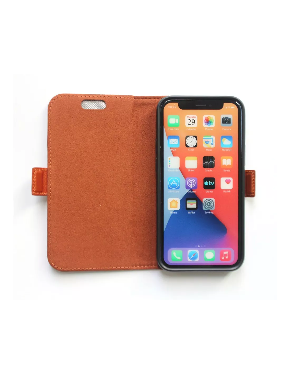 Proteggi il tuo iPhone 12/12 Pro con stile riducendo l'esposizione alle onde elettromagnetiche. Questa custodia in vera pelle unisce stile, sicurezza e innovazione.