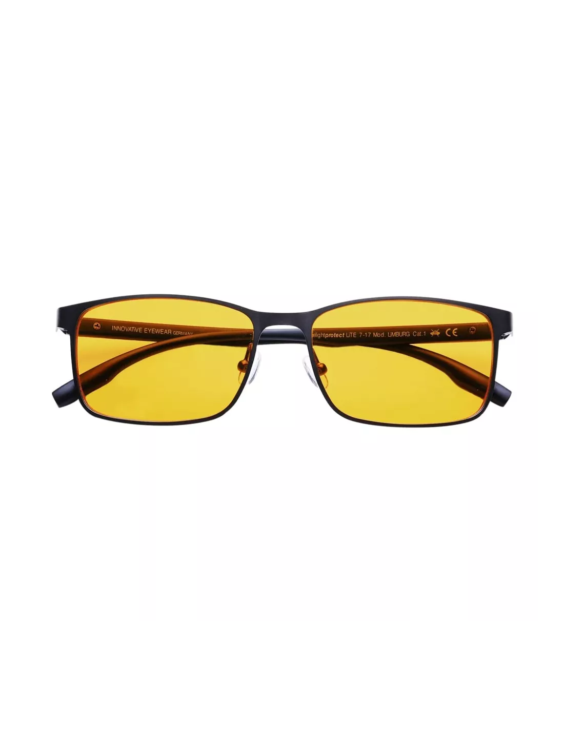 Nuovo stile di occhiali LIMBURG LiTE Prisma con copertura protettiva ultraresistente! Molto eleganti. Lenti 100% antiriflesso "AMBER LITE" per una protezione del 95% degli occhi dalla luce blu artificiale prodotta da schermi piatti (TV, PC, ecc.), lampade fluorescenti compatte e LED.