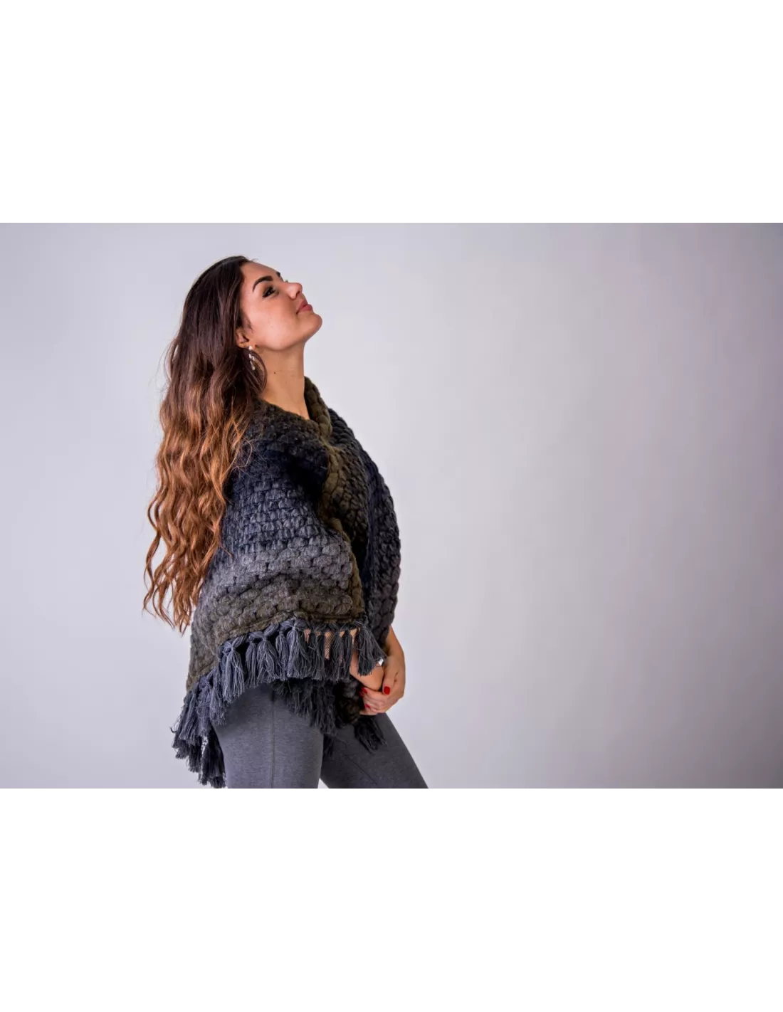 I due stili vengono spesso confusi: il poncho è chiuso sul davanti, mentre la mantella è aperta sul davanti e può essere indossata come una grande sciarpa sulla parte superiore del corpo. Il nostro nuovo modello Cameron è realizzato in lana. È rifinito con lunghe frange di cotone, alcune delle quali sono fatte a mano. L'interno è in cotone jacquard argentato schermato, che offre un'eccellente protezione contro le onde elettromagnetiche.